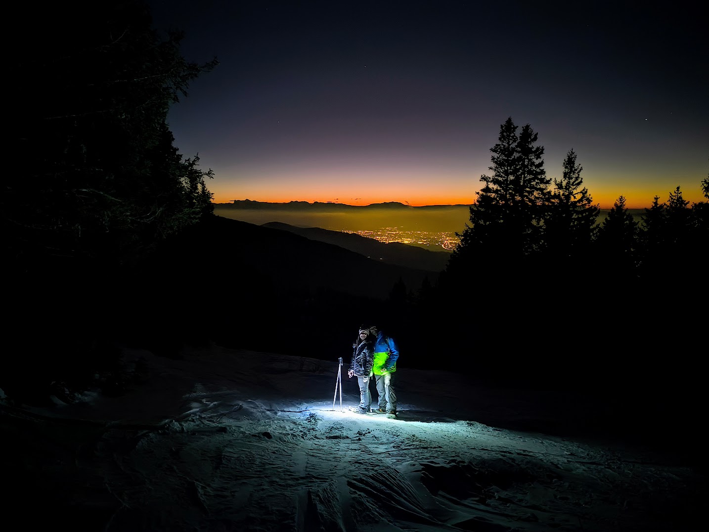La journée n’est pas finie ! Profitez du retour au calme sur le domaine skiable, afin d’observer un coucher de soleil. La descente dans la forêt, à la lueur des frontales, est toujours un moment mystérieux…